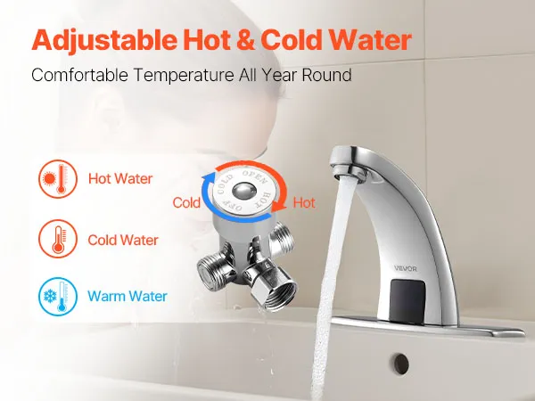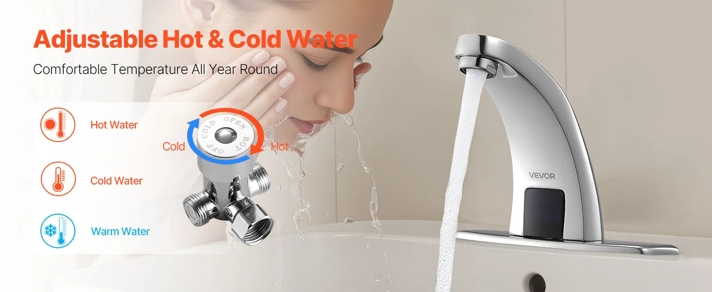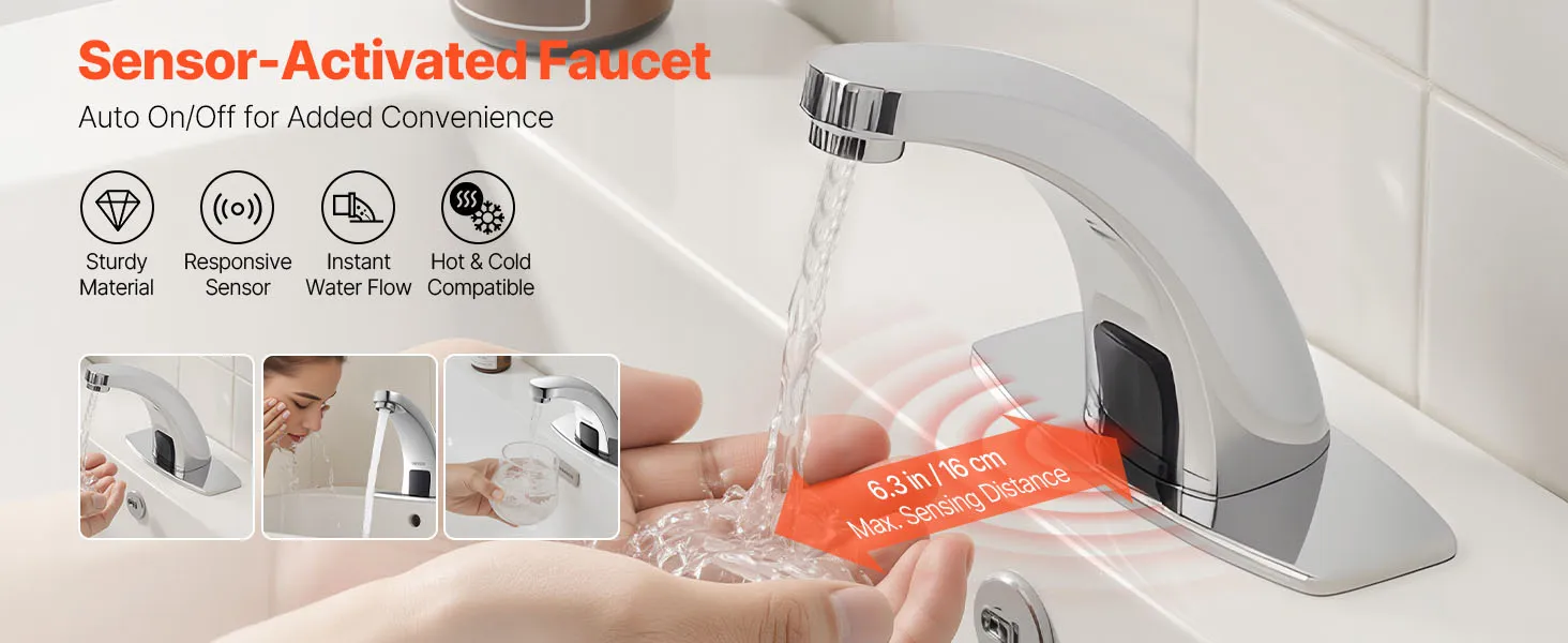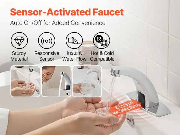 Automatic Water Flow: Upgrade your bathroom with this touchless bathroom sink faucet. The built-in infrared sensor faucet activates water flow automatically. With a long sensing range, this faucet delivers water effortlessly for easier handwashing