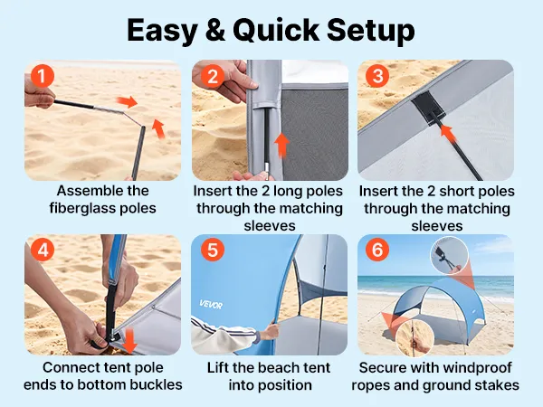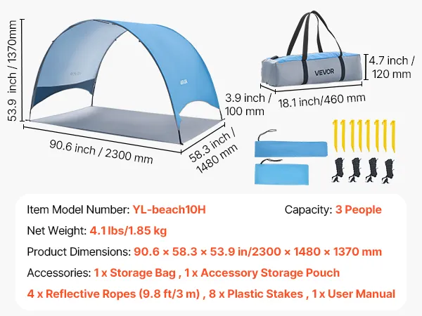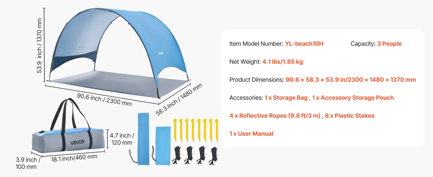 Lightweight & Portable: Our beach tent allows for easy packing of the tent and all parts into the storage bag for easy transport. Ideal for parks, beaches, lakes, camping, fishing, sports events, festivals, yard lounging, and home relaxation