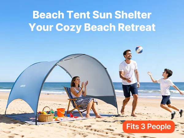 3-Person Beach Tent: Designed for families of three, our beach tent sun shelter provides spacious shade and a spacious room to relax. Setup is effortless—just a few minutes for a quick, stress-free assembly