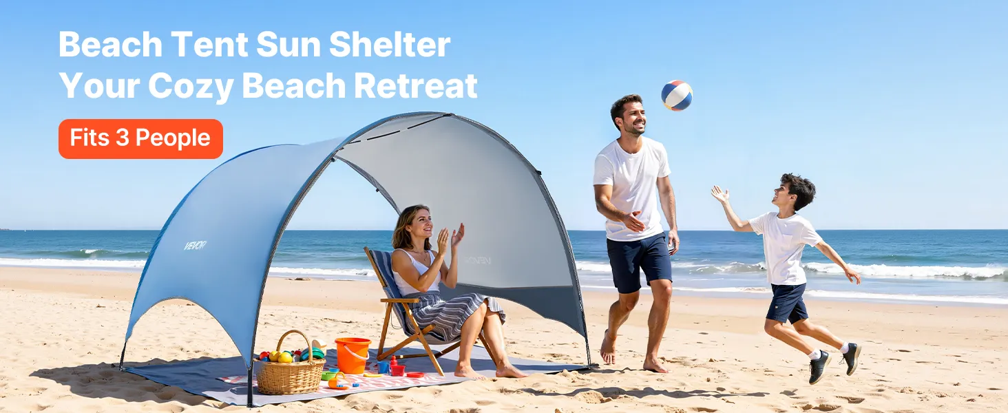 VEVOR Beach Tent Sun Shelter for 3 Person, UPF 50+ Protection, Portable Sun Shade Canopy with Carrying Bag & Ground Stakes, Lightweight and Easy Setup Beach Umbrella for Camping Fishing Outdoor Picnic