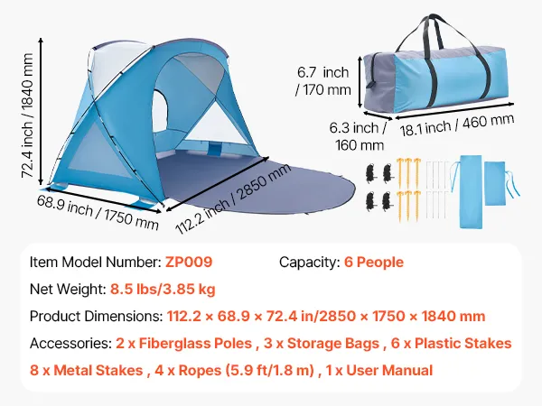Lightweight & Portable: Our beach tent allows for easy packing of the tent and all parts into the storage bag for easy transport. Ideal for parks, beaches, lakes, camping, fishing, sports events, festivals, yard lounging, and home relaxation