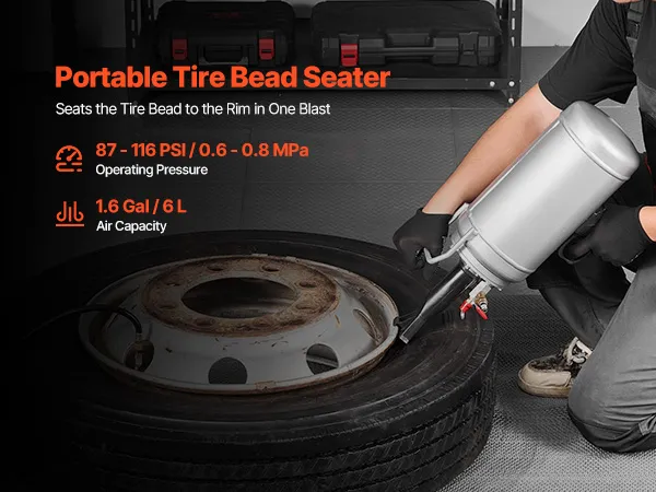 VEVOR Portable Tire Bead Seater, 1.6 Gal / 6 L Air Bead Blaster, Handheld Tire Inflator Tool, 87-116 PSI Operating Pressure, Trigger Seating Inflator for Car, Compact SUV, Light Truck, E-Bike, RV, ATV VEVOR Portable Tire Bead Seater, 1.6 Gal / 6 L Air Bead Blaster, Handheld Tire Inflator Tool, 87-116 PSI Operating Pressure, Trigger Seating Inflator for Car, Compact SUV, Light Truck, E-Bike, RV, ATV