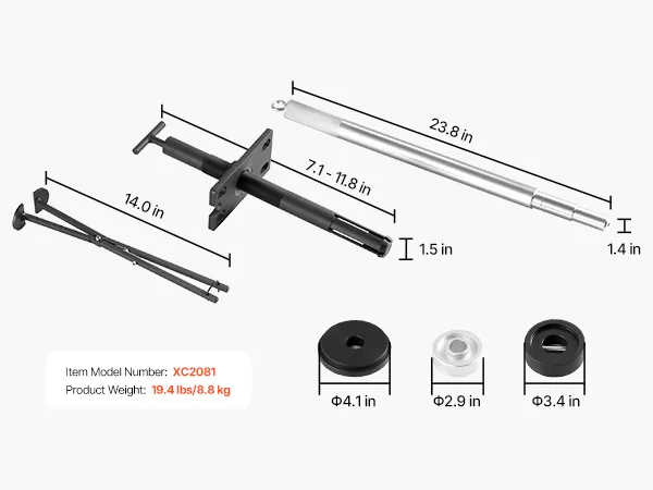 Bellows Removal & Installation: Scissor-style design simplifies engine bellows service with an extension range of Φ2.4–4.3 in (Φ62–108 mm). The lock pin and clip system of our gimbal bearing puller ensures stability and correct expansion during use
