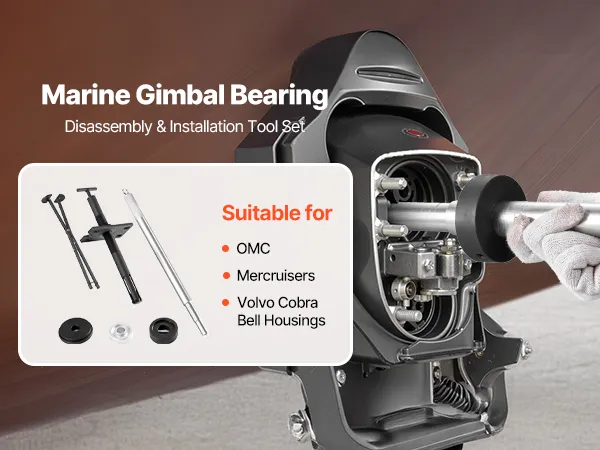 Removal, Installation & Alignment Kit: This mercruiser alignment tool kit lets you detach and install gimbal bearings and align the engine. It is built from tough steel with a corrosion-resistant finish to withstand oil exposure and repeated impact