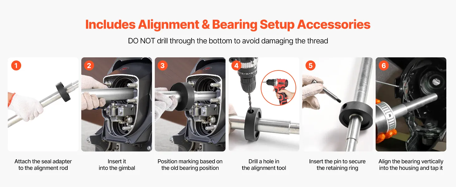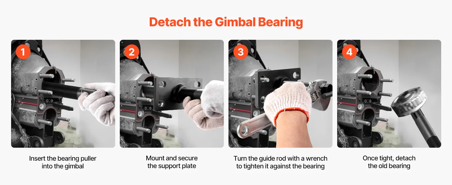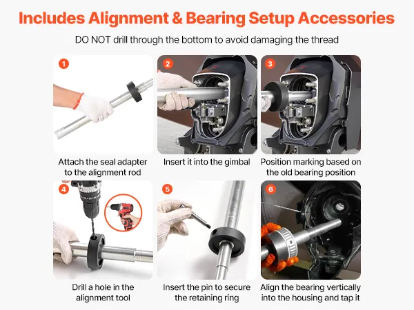 Bearing Installation & Alignment: The gimbal bearing installer puller includes a heat-treated screw and guide bar to keep the end ring securely in place. Drill and fix according to the old bearing's position to avoid misalignment during installation