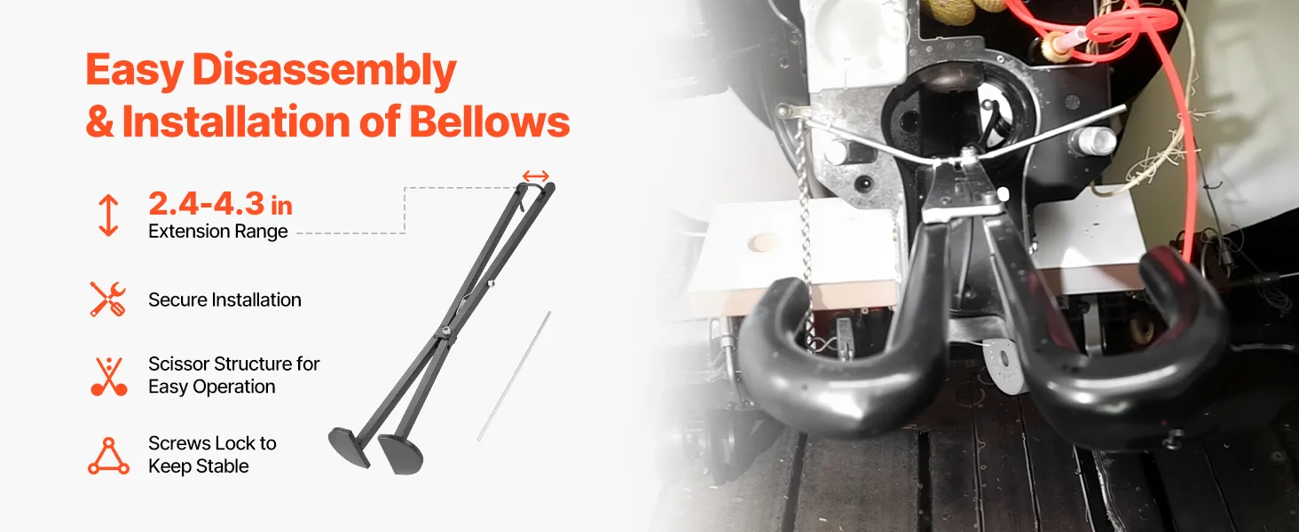 Our gimbal bearing installer puller comes with a steel scissor-style bellow expander. It simplifies both the removal and installation of bellows, ensuring secure connections with no leakage.