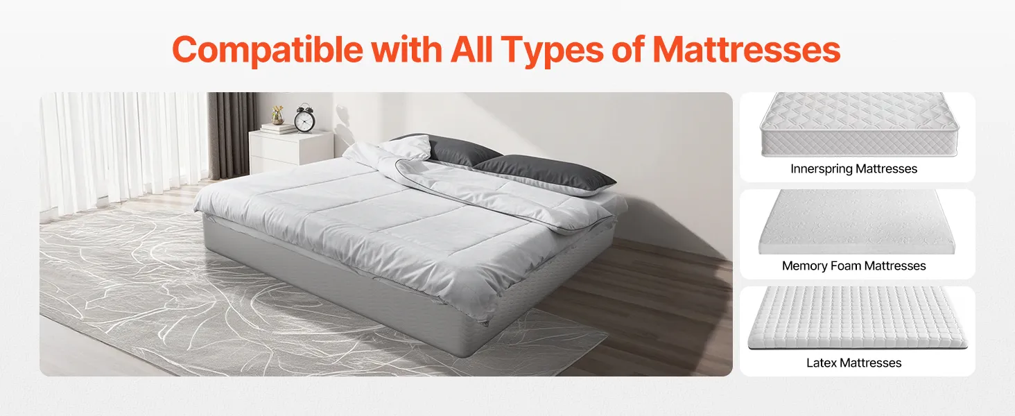 Featuring a non-slip fabric cloth, it easily adapts to spring, memory foam, latex, and other types of mattresses, preventing slipping even with movement.