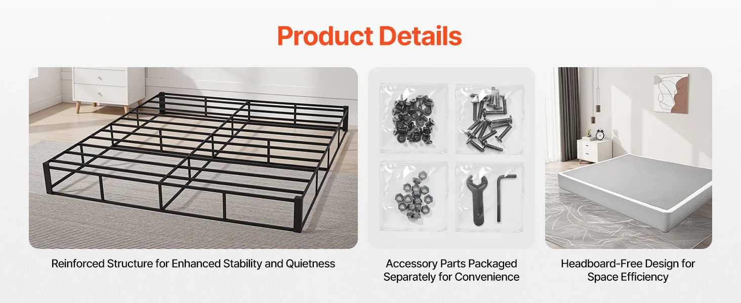 Made from thickened metal material, our bed box provides stable support without wobbling, bending, or sagging, unlike thinner frames.