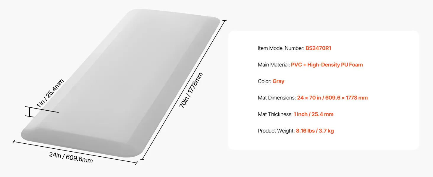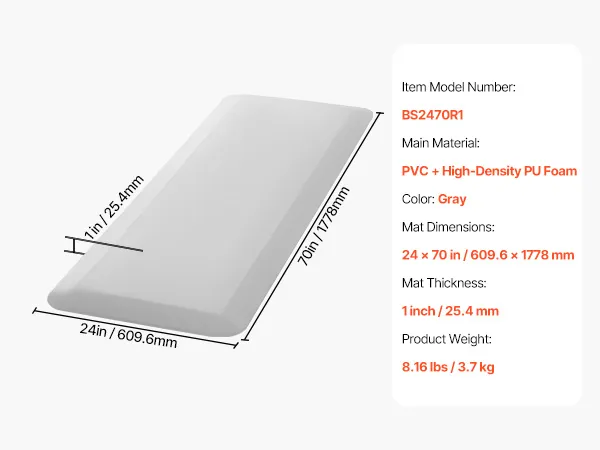 Our 24 x 70-inch fall mat offers enhanced security for the elderly and patients. The 1-inch thickened design with PVC textured surface and PU foam inner provides reliable cushioning, while the dual anti-slip design prevents accidental sliding and beveled edges for easy access for wheelchairs.