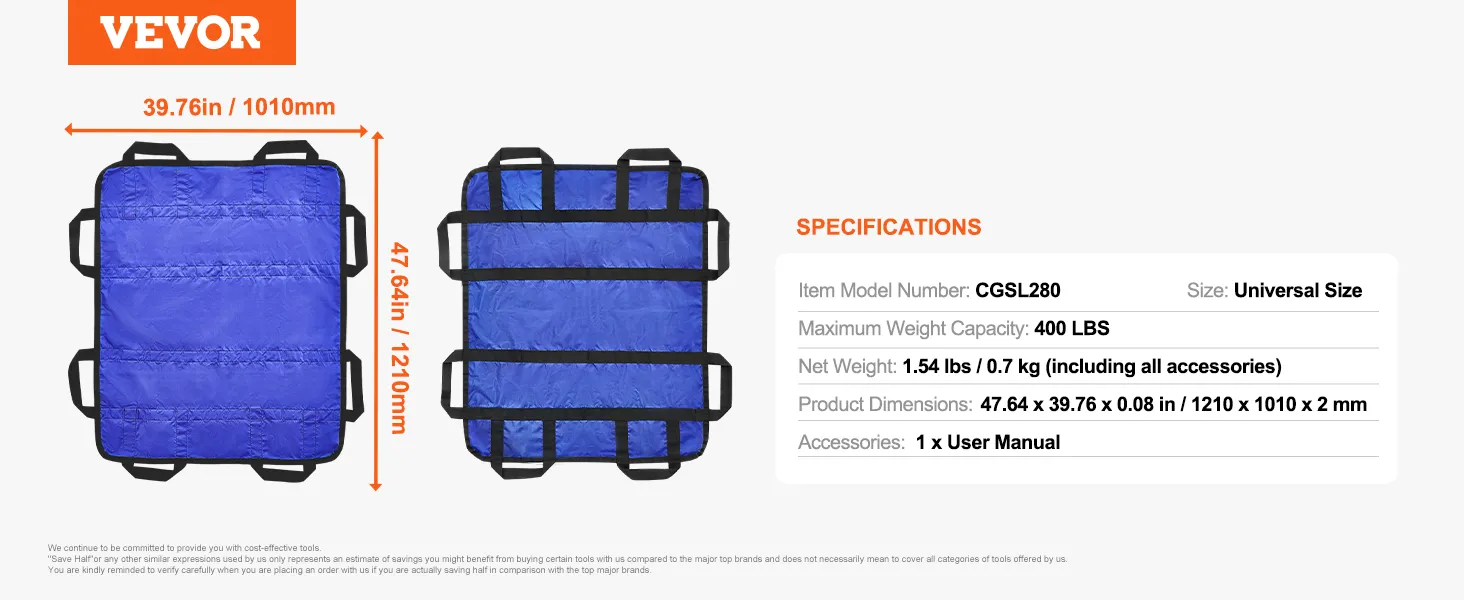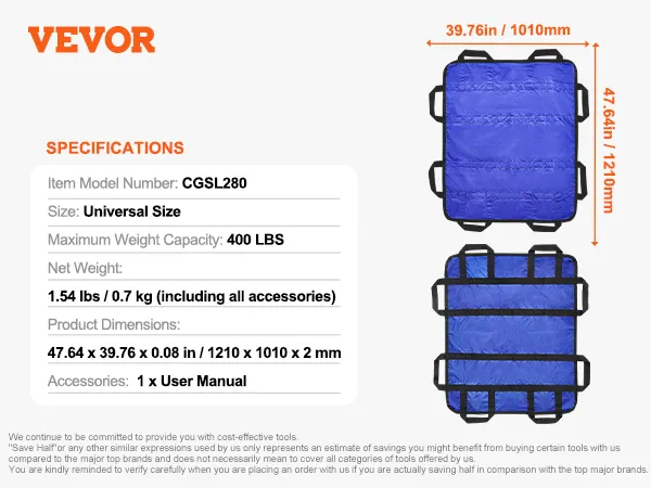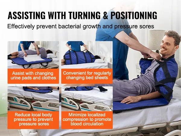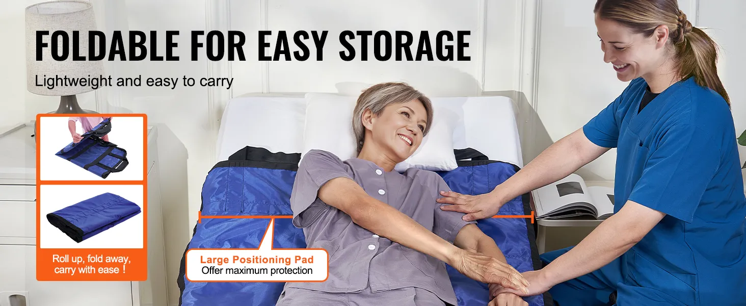 Effortless Repositioning: VEVOR positioning bed pad supports up to 400 pounds, ensuring reliable and effortless turning, lifting, repositioning, and sitting up. It provides stable support, reducing caregiver strain, making caregiving task simple and safe