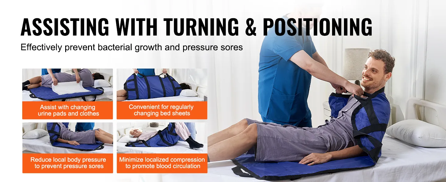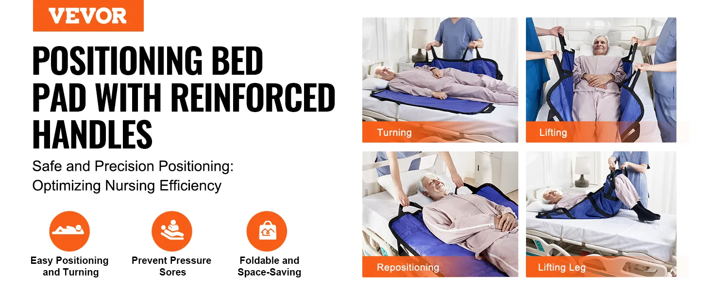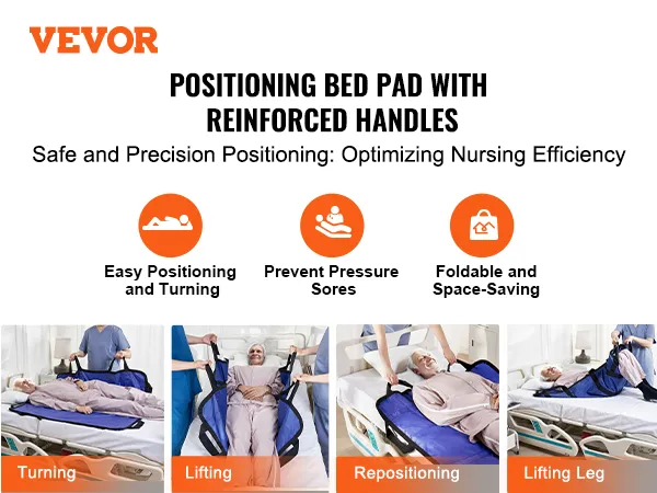 VEVOR positioning bed pad with 8 reinforced handles supports up to 400 pounds, making turning, lifting, and repositioning safe and effortless. It delivers stable support to reduce caregiver strain, optimizing nursing efficiency and ensuring a safer experience for both caregivers and patients.