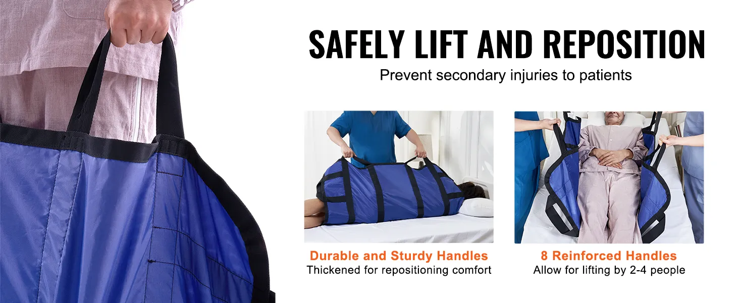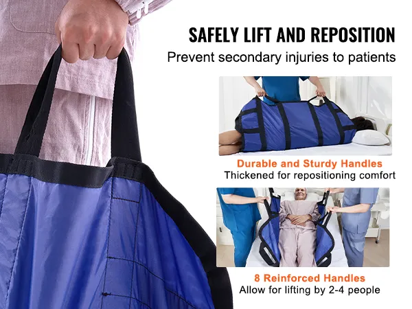 8 Reinforced Handles: This patient transfer pad features 8 reinforced handles that reduce physical effort and make patient lifting effortless. Soft, easy-to-grip handles support 2 to 4 caregivers working together, greatly enhancing efficiency and safety