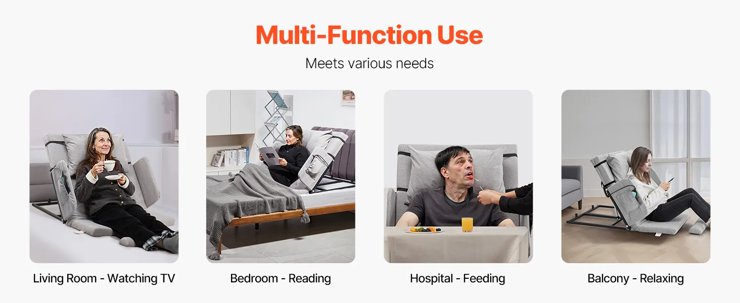 The adjustable lifting bed backrest is ideal for a variety of settings. Whether you're watching TV in the living room, reading in the bedroom, assisting with feeding in a hospital, or relaxing on the balcony, it provides convenience and comfort to meet diverse needs.