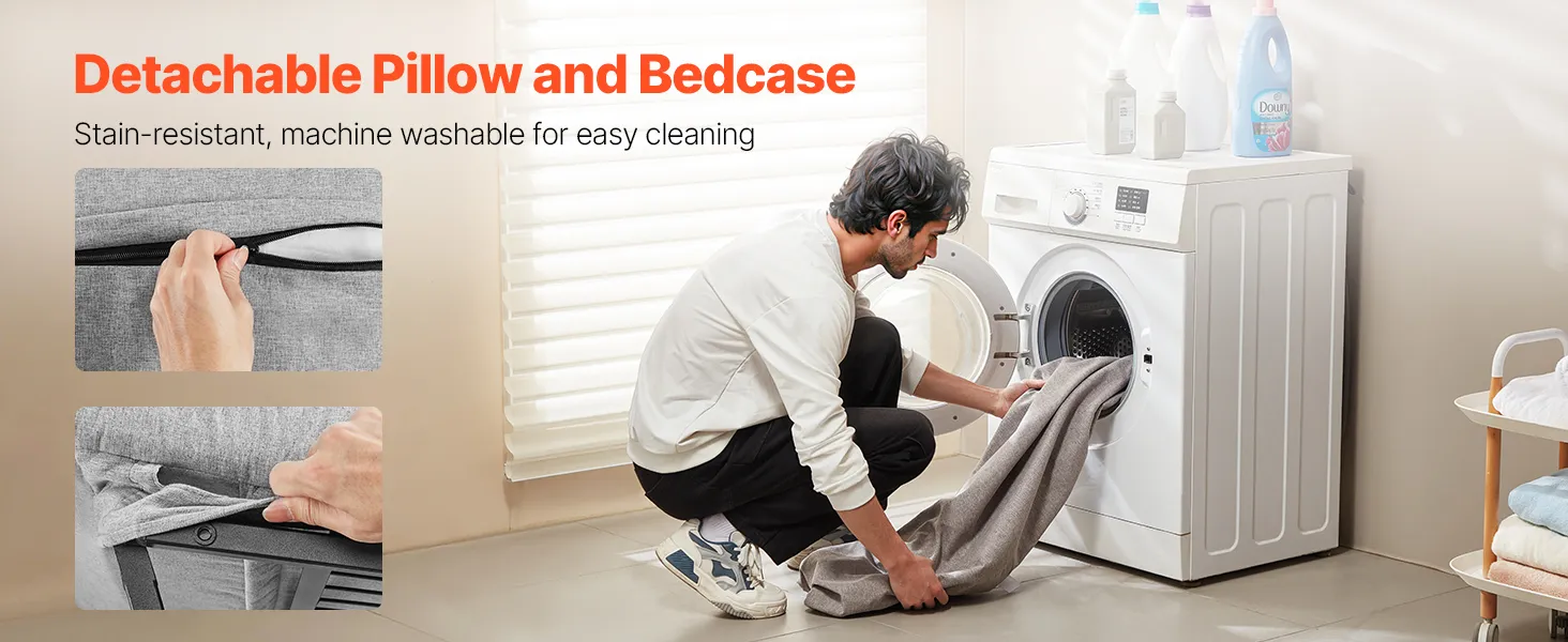 The electric bed lift features a removable pillow and bedcase that can be easily detached and machine-washed. Whether dealing with light stains or stubborn dirt, it quickly returns to a clean and tidy state, simplifying regular cleaning.