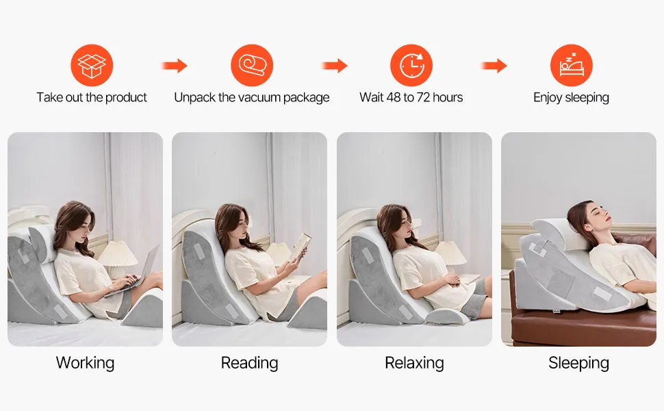 Multifunctional Design: This acid reflux pillow provides a variety of combinations and can be used for sitting, leaning, and lying. It is suitable for a variety of scenes, such as sleeping, reading, watching TV, etc., to meet your different comfort needs.