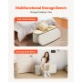 VEVOR Oval Storage Ottoman Bench, Foldable Teddy Fleece End of Bed Bench, Folding Upholstered Bed Ottoman Chest with Large Storage Space, Supports 660 lbs, for Living Room, Bedroom, Entryway, Beige