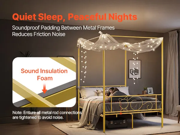 Noise-Free Design: Soundproof padding at metal joints reduces friction noise, ensuring a quiet and comfortable sleeping environment with the full canopy bed