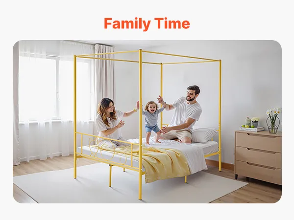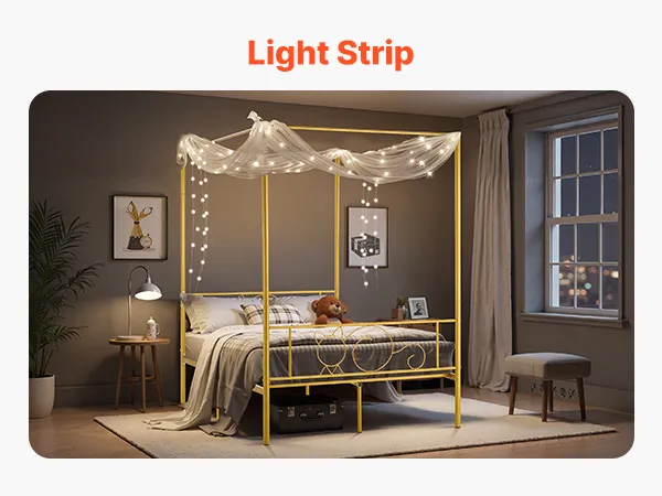 DIY Customization: The canopy rails and posts allow you to easily hang string lights, decorations, and curtains to create a personalized bedroom space