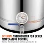 Our brewing kettle with thermometer allows easy and precise temperature monitoring without lifting the lid. Its dual-scale thermometer displays temperatures from 0-120°C/0-250°F, ensuring optimal control over the brewing process. Paired with a secure, stainless steel lid that maintains heat, this kettle enhances your brewing experience with safety and efficiency, making it a top choice for home brewing.