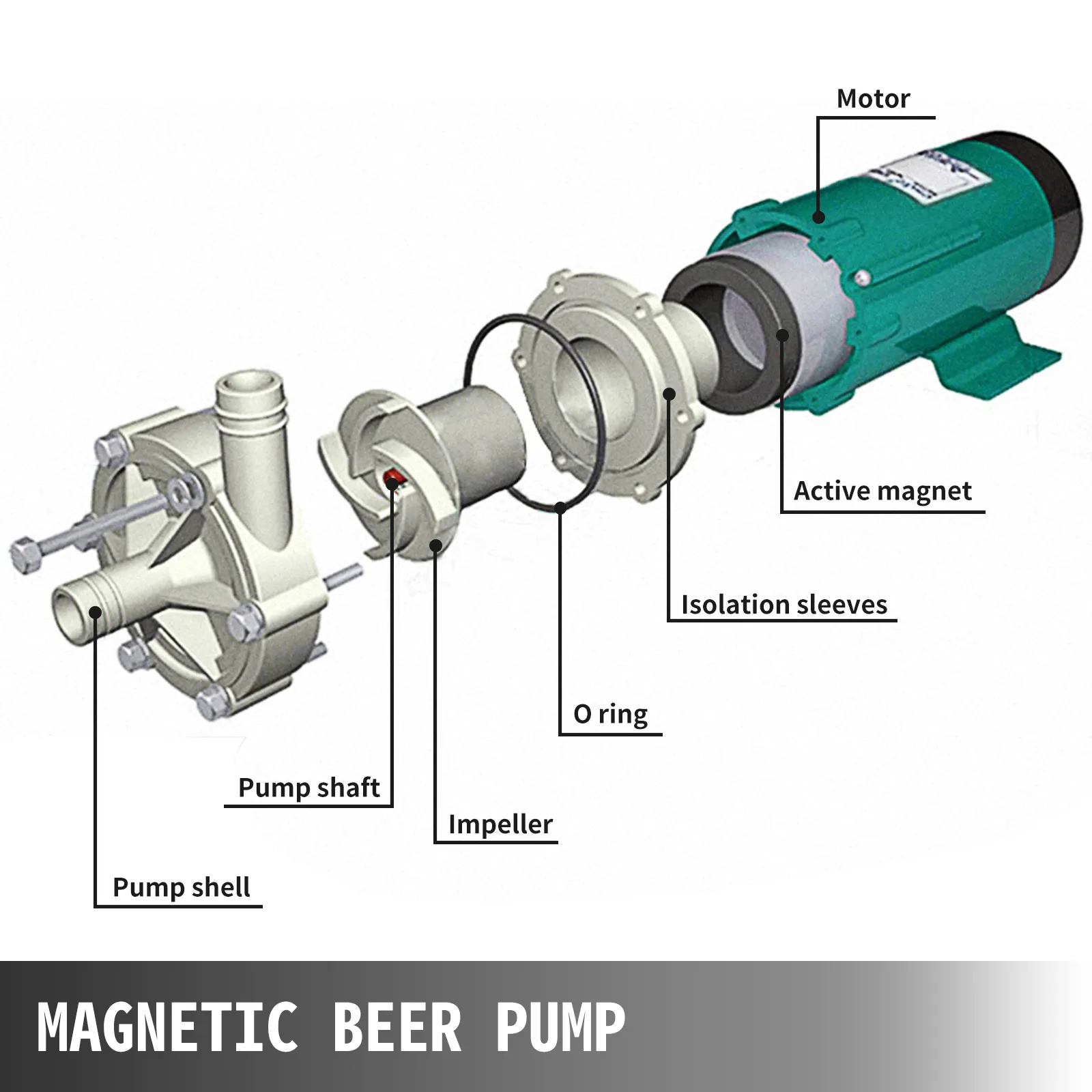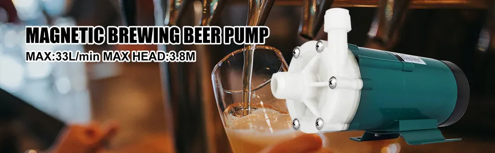The safest and most efficient way to move piping hot and heavy loads of liquid is with the magnetic beer pump. It will save time, effort, and serious injury. Magnetic pump, stainless steel head, resistant to abrasion and corrosion, durable and long life. Our beer pump has been tested for safety and performance standards.