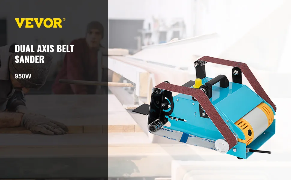Power: 950 W. With a full copper motor and pure copper winding rotor, the bench belt sander features high efficiency and high precision. The rotating speed: 800-6000 RPM.