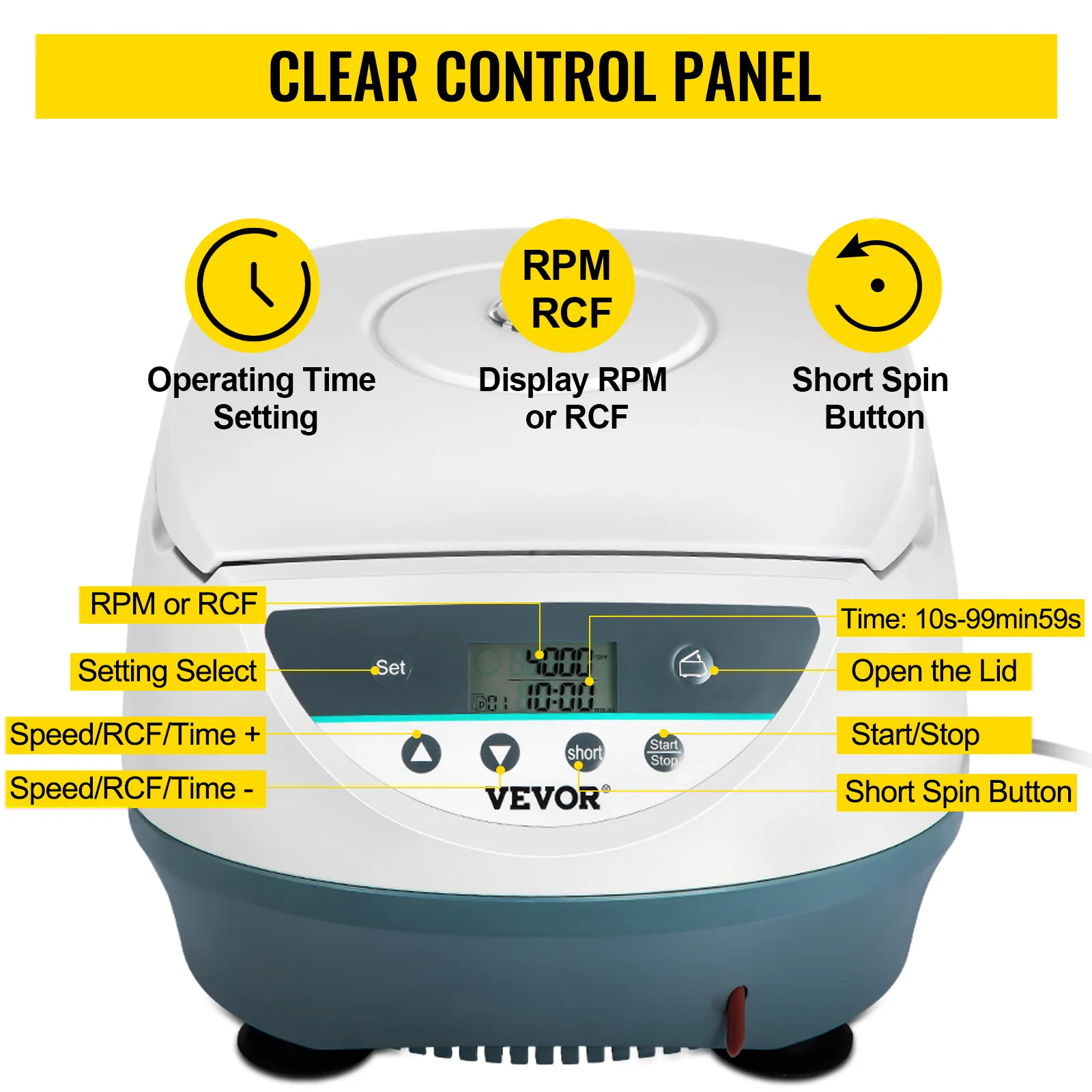 Our lab centrifuge machine comes with two rotors: 6 x 15mL rotor and 8 x 15mL rotor, and it accommodates 15mL centrifuge tubes, processing a large volume of samples at a time.