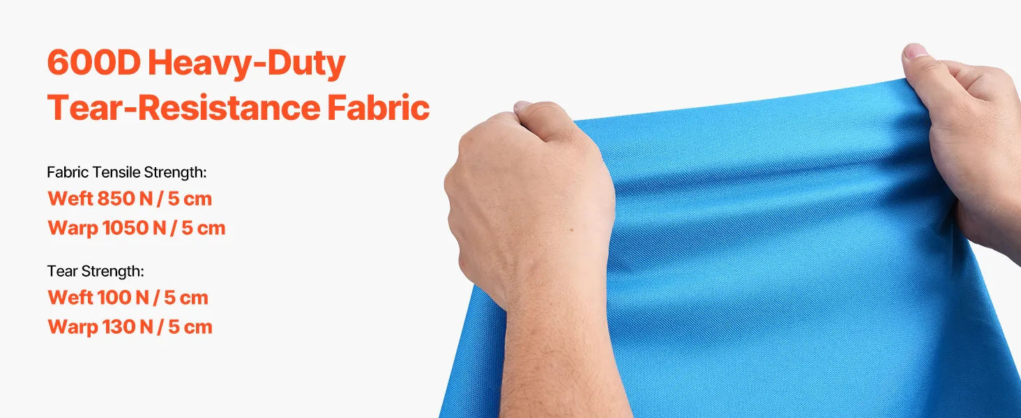 600D Heavy-Duty Sunshade Fabric: Made from durable 600D marine-grade polyester fabric with a density of 230g/㎡, this canopy offers >PU1000 waterproofing and Sun Shade sun protection. The high-quality dyeing process ensures long-lasting color that won’t easily fade or age.