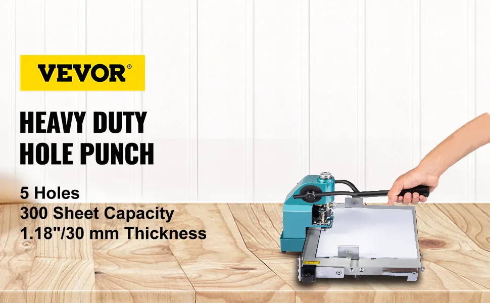 The heavy duty punch will easily punch through sizeable stacks of paper, cutting up to 300 sheets with 1.18"/30 mm thickness. This large capacity ensures high working efficiency.