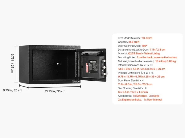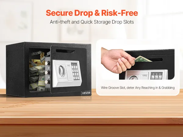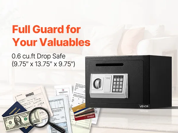 0.6 cu.ft Drop Slot Safe: This drop safe features a front deposit slot, allowing you to easily deposit cash or documents without opening. With a spacious 0.6 cu.ft capacity, it can hold large amounts of cash, checks, documents, jewelry, and other valuables