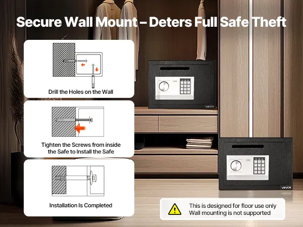 Easy to Install & Versatile Use: The back of the safe includes two pre-drilled mounting holes, allowing you to secure it to a solid wall, floor, or inside a cabinet. Its discreet matte black finish blends seamlessly into home or work environments