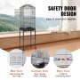 The main door has a safety design for caregiver access for feeding, cleaning, and maintenance, preventing bird escapes. An extra access door simplifies food and water replenishment.