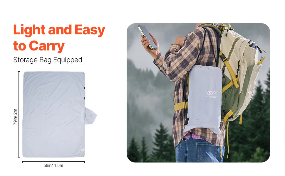 Designed for your busy outdoor lifestyle, this blanket unfolds to a generous size of 2 m x 1.5 m. When it' s time to pack up, it compresses easily into your backpack and weighs only 0.81 kg, making it a breeze to carry.