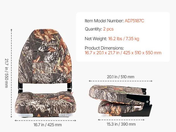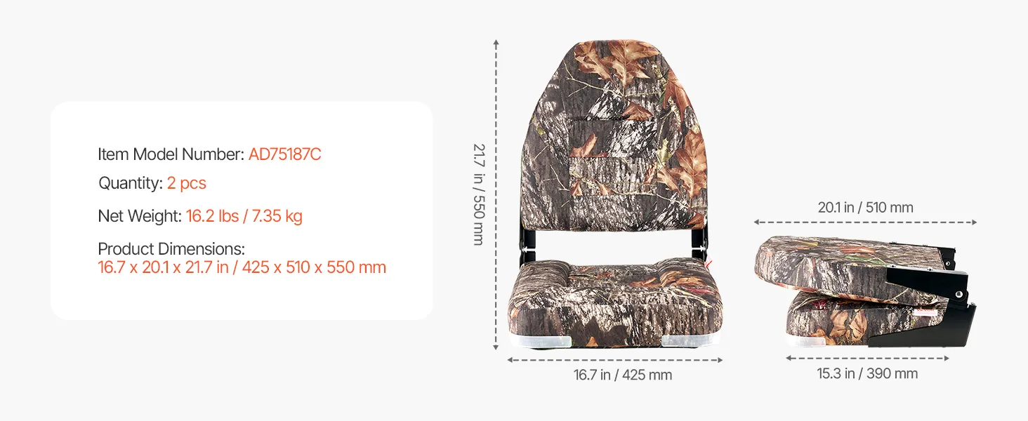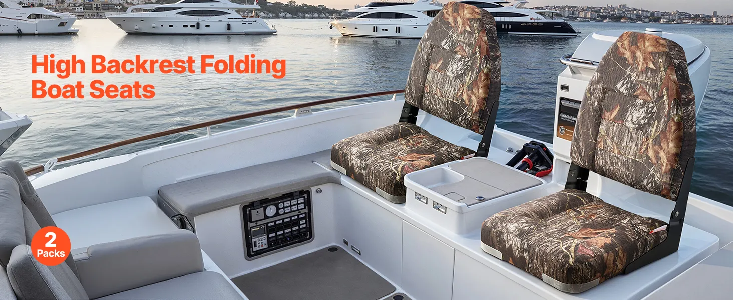VEVOR Boat Seat, High Backrest, Folding Fishing Boat Seat with Thickened Sponge Cushion & PU Polyester Fabric, Aluminum Alloy Hinges, Flip Up Boat Seat for Boats, Yachts, Ships, Camouflage (2 Seats) VEVOR Boat Seat, High Backrest, Folding Fishing Boat Seat with Thickened Sponge Cushion & PU Polyester Fabric, Aluminum Alloy Hinges, Flip Up Boat Seat for Boats, Yachts, Ships, Camouflage (2 Seats)