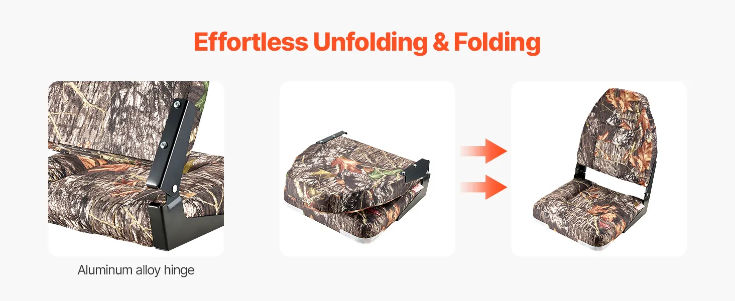 VEVOR Boat Seat, High Backrest, Folding Fishing Boat Seat with Thickened Sponge Cushion & PU Polyester Fabric, Aluminum Alloy Hinges, Flip Up Boat Seat for Boats, Yachts, Ships, Camouflage (2 Seats)