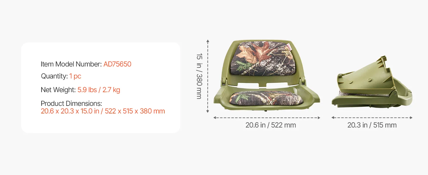 Foldable Design: The backrest of our fishing boat seat can be smoothly unfolded or folded, making it easy to store without taking up too much space.