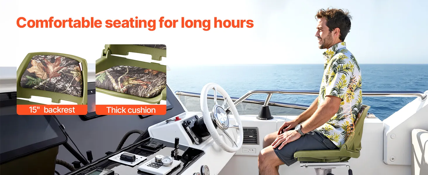 The folding boat seat design provides great support, with both the backrest and seat cushion made of high-elastic thick foam. It resists flattening, providing soft support to reduce fatigue from prolonged sitting.
