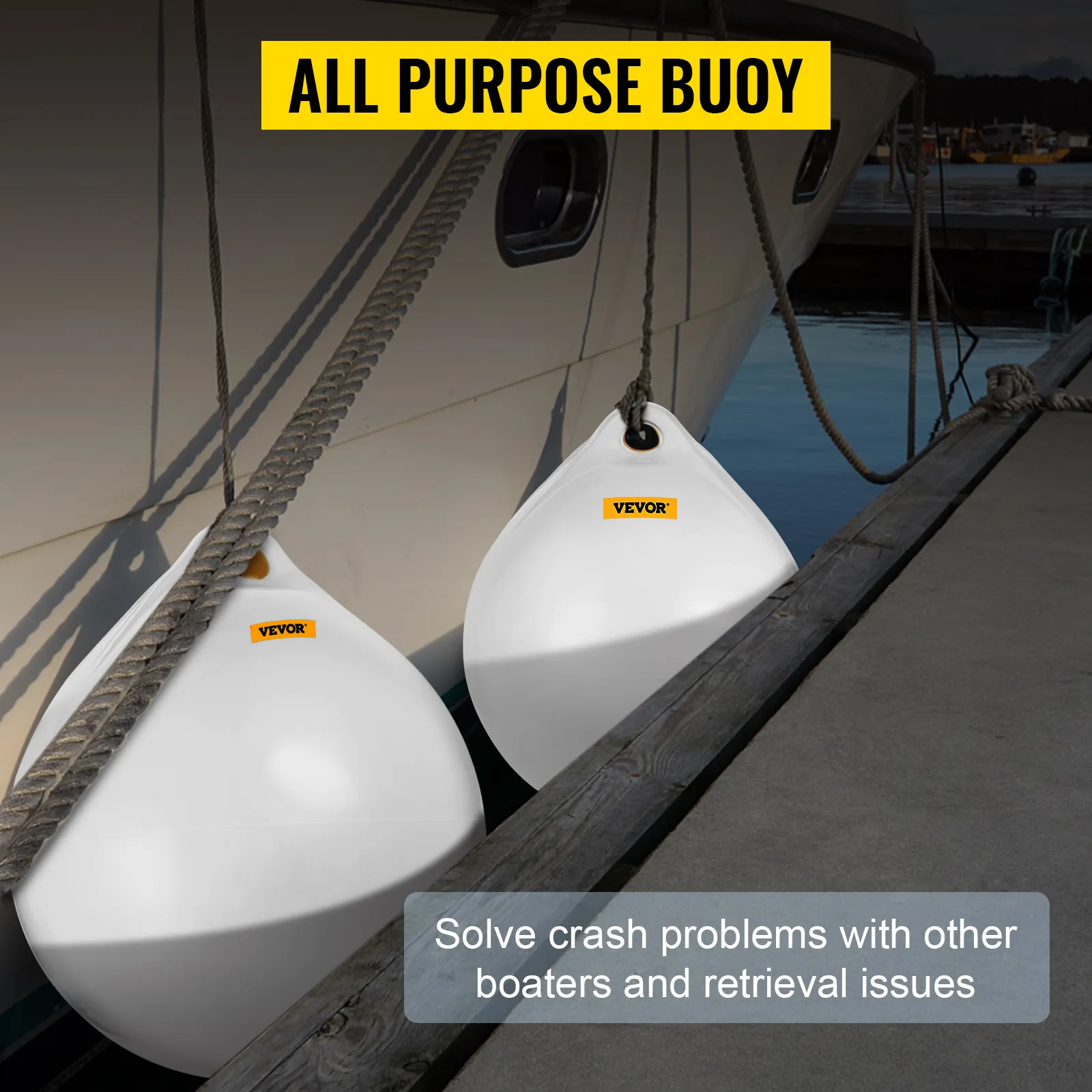 VEVOR boat buoy is commonly used as a marker buoy, anchor buoy, or mooring buoy and provides strong protection for marine fenders. Wide range of applications, boat, yacht, and dock. It's made of high-quality PVC and features a seamless one-piece design. Safeguard your sailing journey and go further with VEVOR!