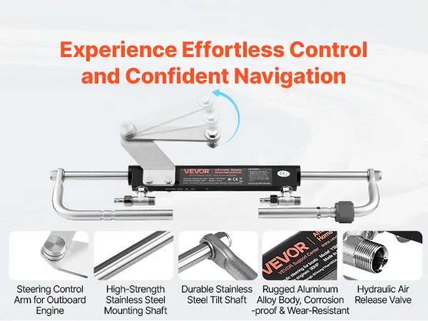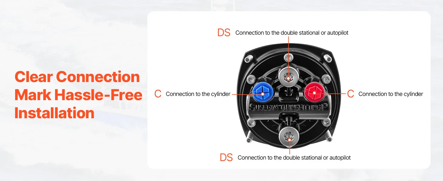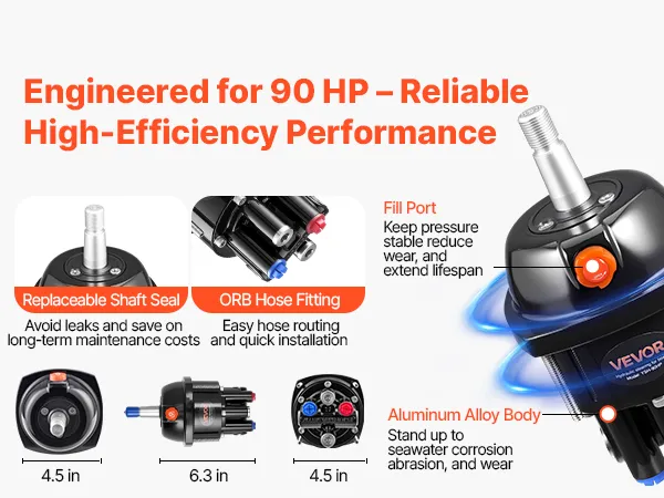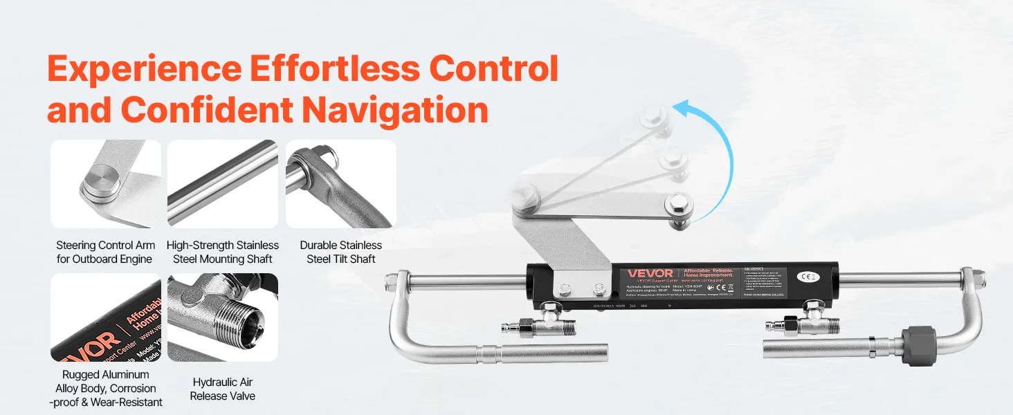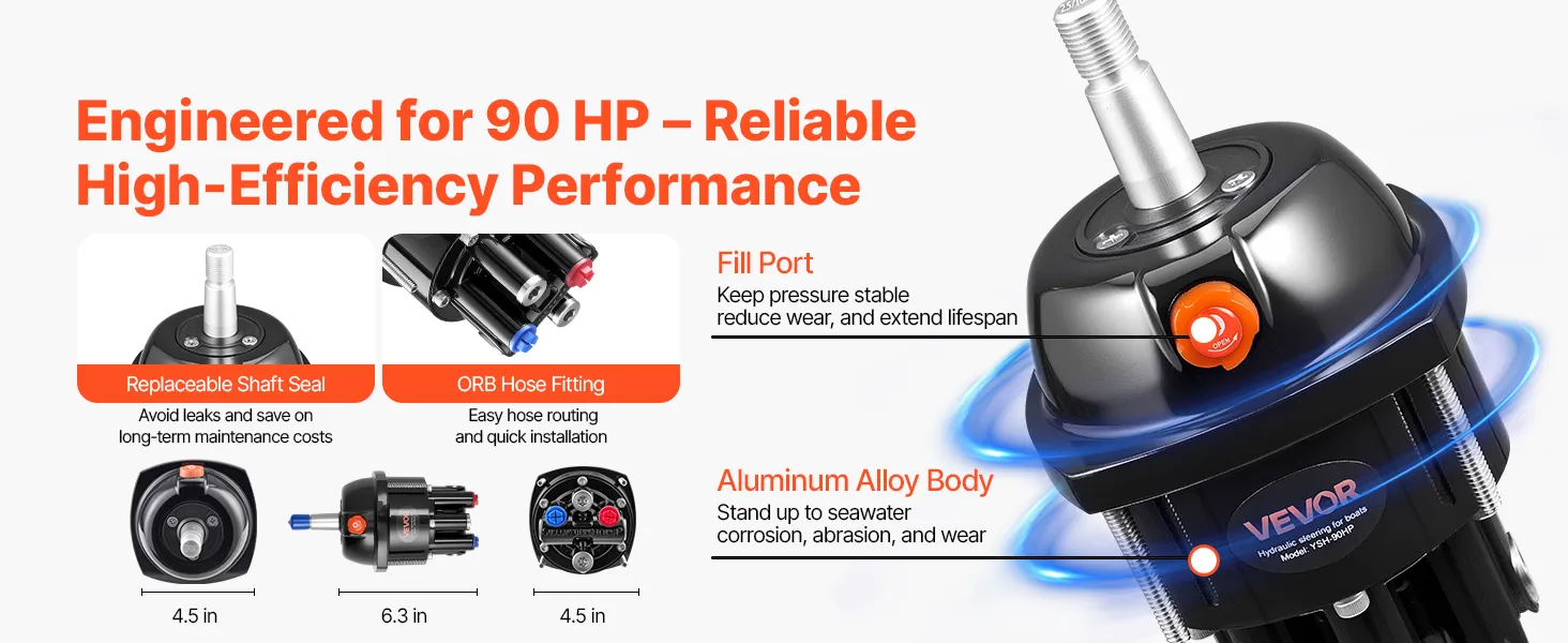 Durable & Reliable Helm Pump: Built to handle 6.9 MPa/1000 psi, this marine hydraulic steering kit features a check valve, fill port, stainless steel ORB fittings, and a replaceable shaft seal. The aluminum alloy housing ensures long-term use