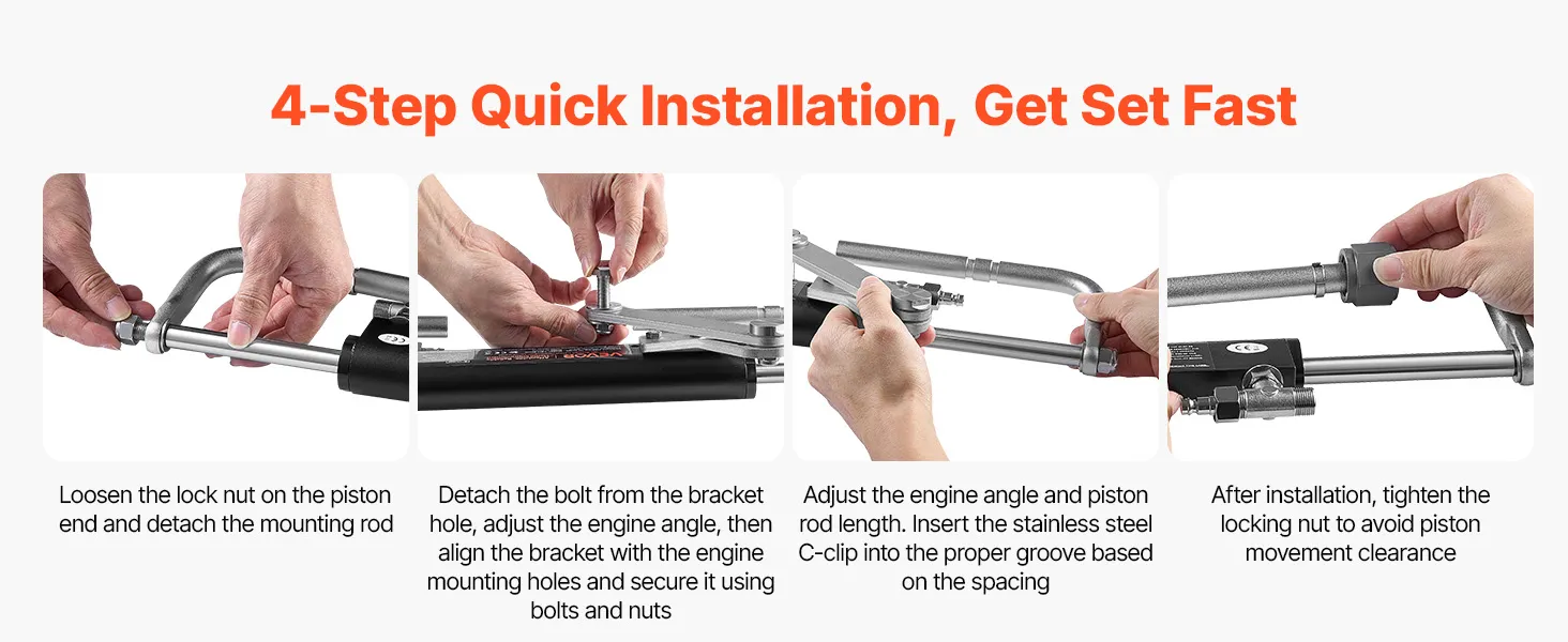 Compact Hydraulic Cylinder: The boat hydraulic steering system includes a space-saving cylinder that fits a variety of boat types. Its reinforced sealing structure ensures smooth steering performance and durability even in rough marine conditions