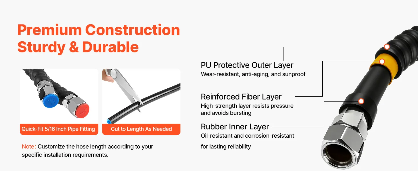 2 x 20FT High-Strength Hoses: With a max working pressure of 25MPa, these premium hoses resist bursting, kinking, and leaking under heavy load. Equipped with a quick-fit 5/16-inch fitting, allowing for flexible, fast installation across various boats