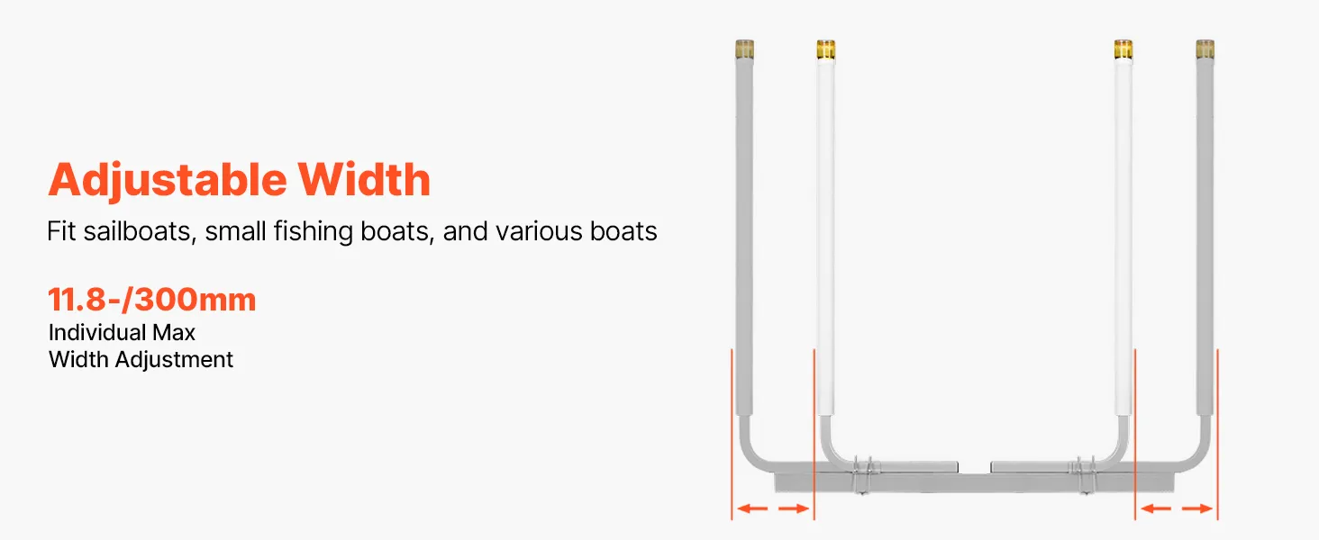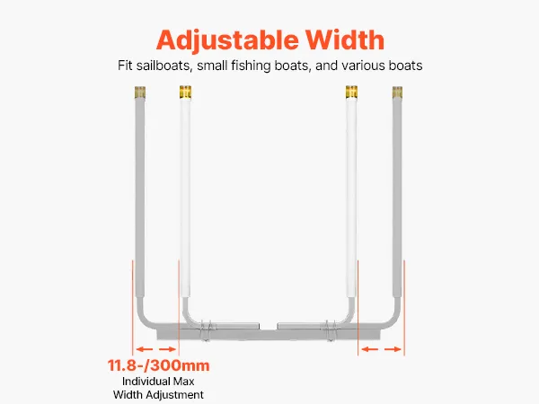 Adjustable Width Guide: With adjustable width, the trailer guide-on can expand up to 11.8 in / 300 mm on each side, providing a wide fit for various boat types, including ski boats, sailboats, and fishing boats. This ensures your boat stays in the ideal position for quick and smooth loading