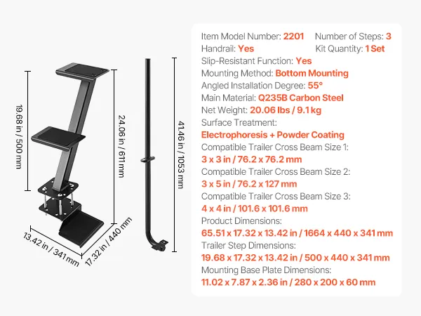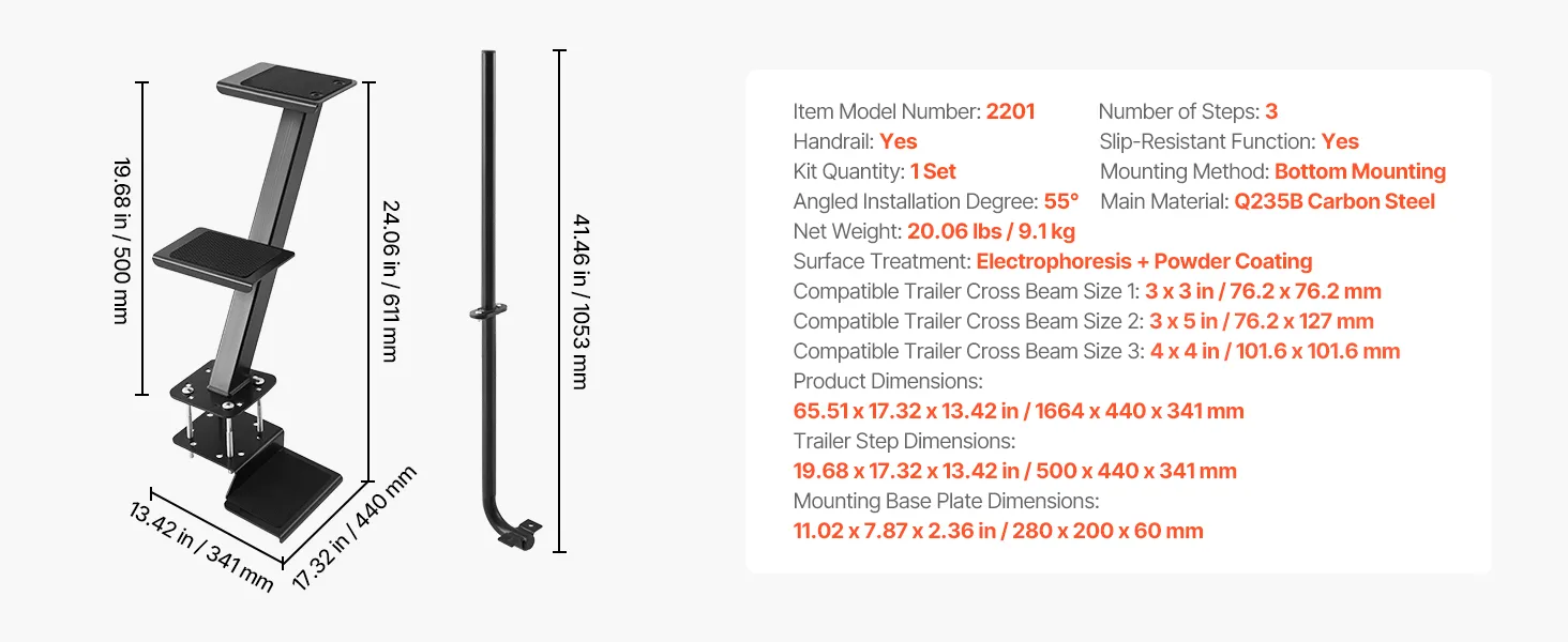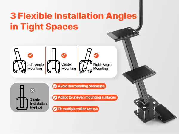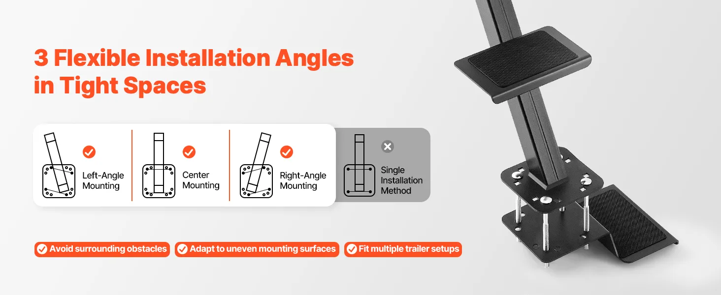 Easy & Secure Installation: These boat trailer steps with handrail install easily with the included hardware and clear instructions. The bottom-mount design with the 55° angled installation ensures a stable connection to the trailer