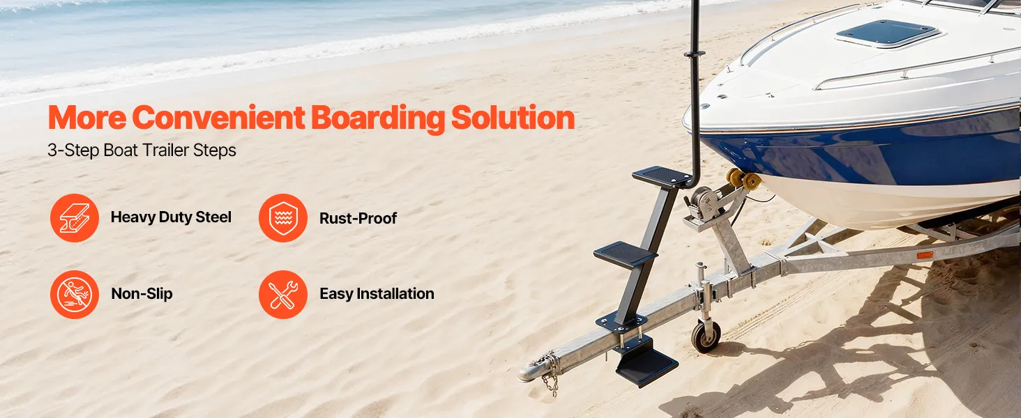 Our boat trailer tongue steps can be installed without complex tools or modifications, and the whole installation process is simple. Please check the dimensions and installation instructions before purchase to confirm proper fit for your trailer.