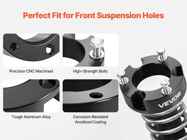 Heavy-Duty Build: The front strut spacer chassis leveling lift kit is crafted from forged 6061-T6 aluminum alloy with an anodized finish for enhanced corrosion resistance and durability. It delivers safe, stable performance even in extreme conditions