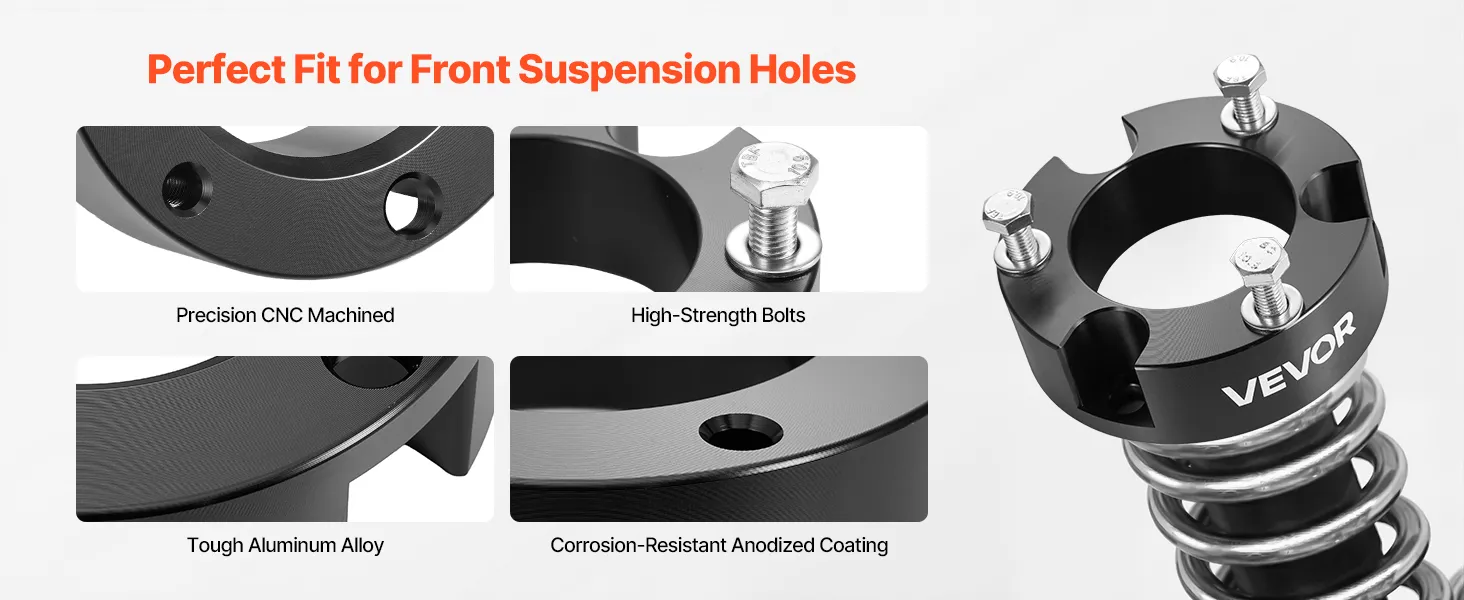 Easy Installation: The leveling kit is CNC-machined for high precision and accurate alignment with suspension hole position. Simplifies installation and ensures tight fit. 4-wheel alignment is recommended after setup for optimal performance