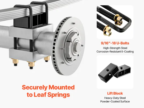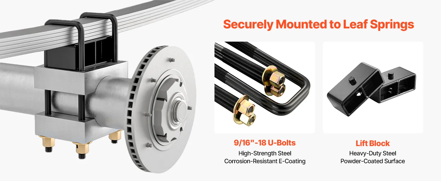 Rear Lift Kit: Our chassis level kit uses lift blocks and high-strength 40cr bolts to secure firmly to the leaf springs. The widened blocks increase surface contact for added security and stability