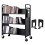 The VEVOR book cart is perfect for libraries. It offers efficient storage and display options. The double-sided design saves space. Both sides have W-shaped sloped shelves. This design ensures books are easily accessible. The double-sided book cart holds up to 330 lbs. of books. You can use it for large collections. These shelves are spacious and can fit various book sizes. The black powder-coated finish is durable. This book cart is an excellent addition to any library setting. It helps you organize and show books beautifully.