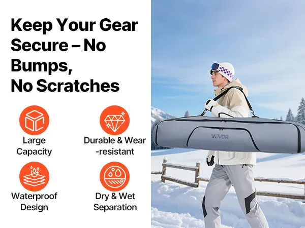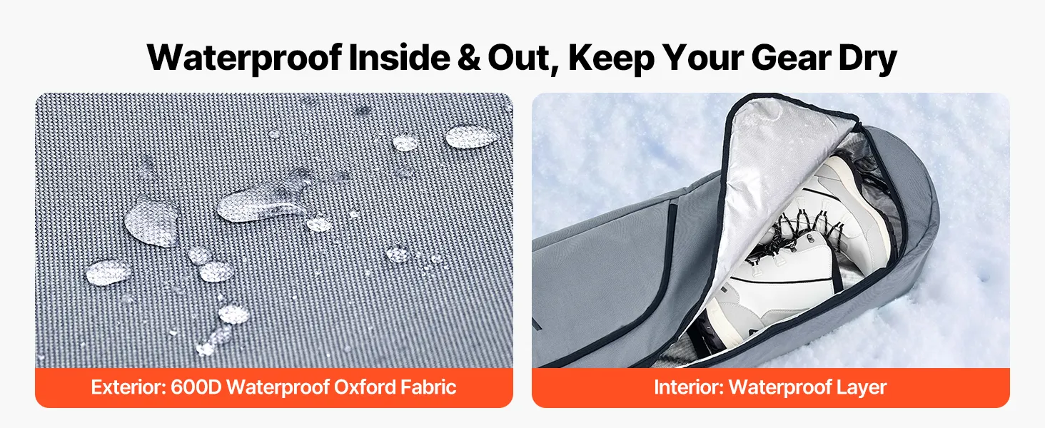 Waterproof Protection: Built with waterproof materials inside and out, our snowboard travel bag for flying keeps your equipment dry even in snow or wet conditions