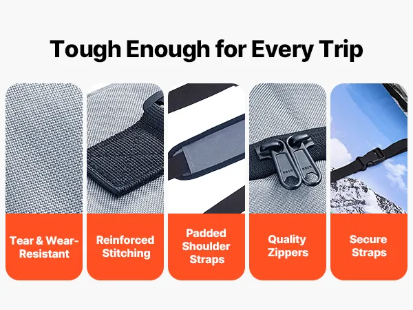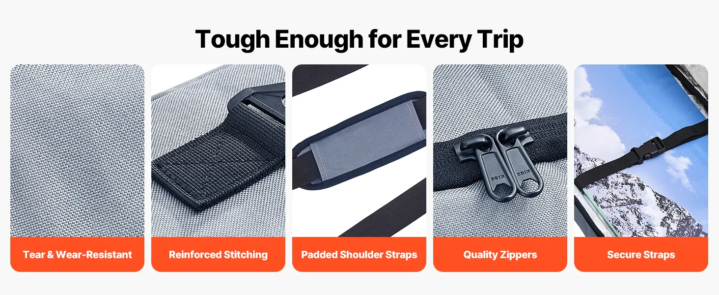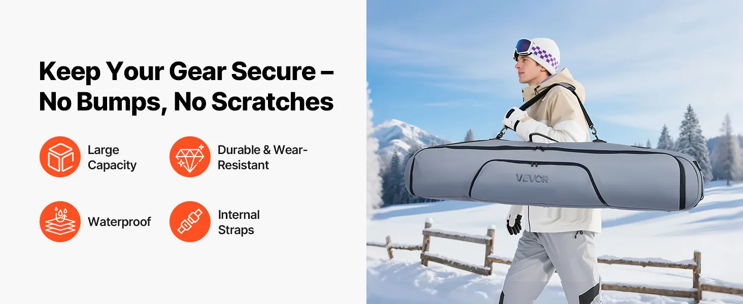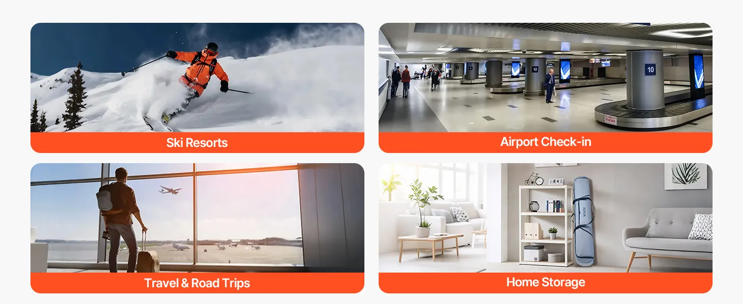 Durable Construction: Crafted from tough 600D waterproof Oxford fabric with reinforced zippers and padded shoulder straps, our snowboard bag for air travel is built to guard your gear through countless adventures