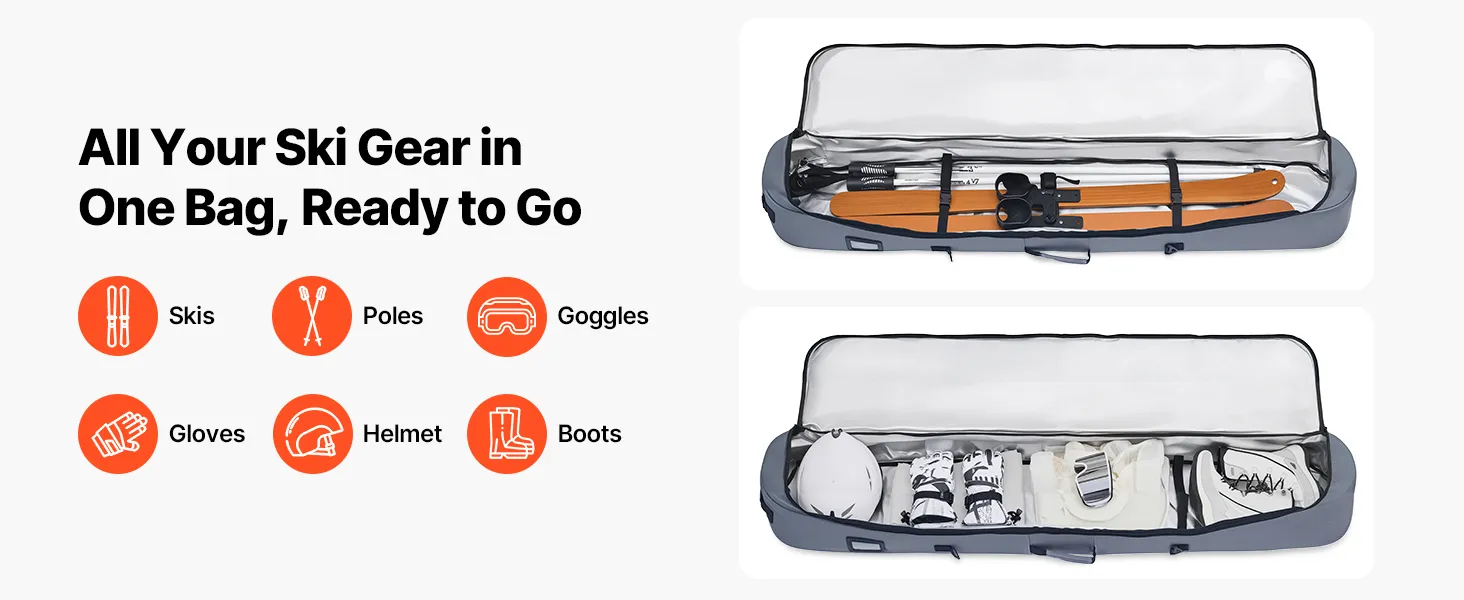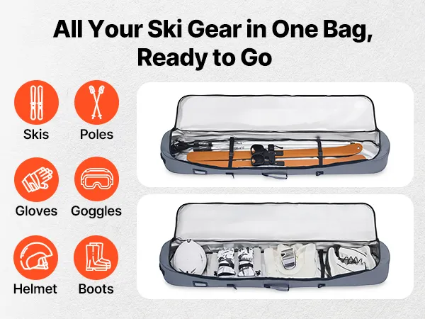 With spacious storage and multiple compartments, made of waterproof and wear-resistant Oxford fabric, our snowboard travel bag for air travel is easy to carry by hand or shoulder. Fits all your ski gear in one bag.